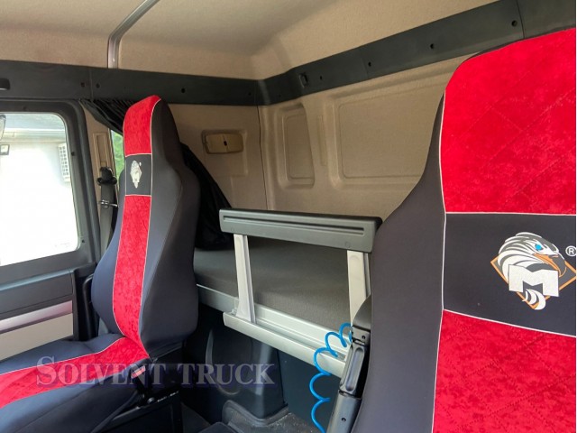 Truck Ausrüstung:Aktive Sicherheit ABS Spurhalteassistent Abstandshalteassistent Antischlupfsystem (ASR) Fahrwerkstabilisierung (ESP)Audio, Video Autoradio ZusatzausstattungKühlung, Heizung Manuelle Klimaanlage StandheizungTüren Zentralverriegelung mit Fernbedienung ZentralverriegelungEmission AdBlue Erfüllt Euro VIFahrerhaus Langkabine Niedrigkabine Fenster Elektrische FensterheberBeleuchtung NebelscheinwerferFahrwerk Stahl-/Luftfederung Höhenverstellung des FahrwerksAntrieb 6-Gang-Schaltgetriebe Motorbremse 4x2-Antrieb Tempomat DifferenzialsperreInstrumente Bordcomputer AußenthermometerLenkung Verstellbares Lenkrad ServolenkungSitze Höhenverstellbarer FahrersitzDach SchiebedachSicherheit WegfahrsperreSpiegel Elektrische Spiegel Beheizte SpiegelSonderausstattung 1 Schlafplatz