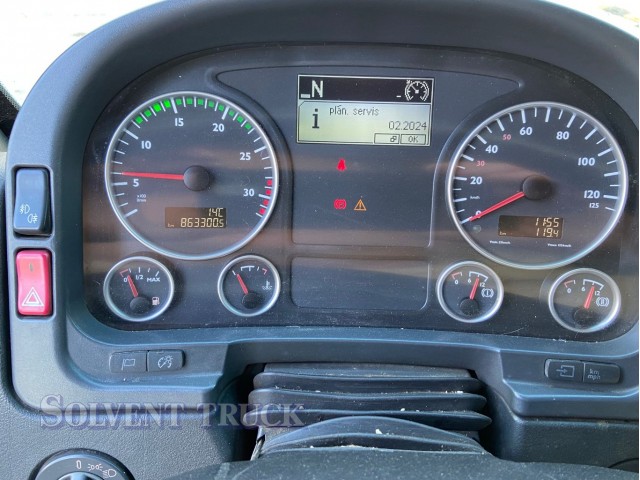 | Výbava vozidla: | Aktivní bezpečnost abs protiprokluzový systém kol (asr) stabilizace podvozku (esp) Audio, video autorádio cd přehrávač Emise plní 'euro v' Exteriér střešní spoiler Kabina kabina krátká kabina nízká Okna el. přední okna Osvětlení mlhovky Podvozek jednoduchá nádrž do 400l nafty pérování ocel/vzduch Pohon 8 rychlostních stupňů manuální převodovka motorová brzda pohon 4x2 tempomat uzávěrka diferenciálu Přístroje otáčkoměr palubní počítač tachograf venkovní teploměr Řízení nastavitelný volant posilovač řízení Sedadla výškově nastavitelné sedadlo řidiče Střecha střešní okno Zabezpečení imobilizér Zrcátka el. zrcátka vyhřívaná zrcátka |
