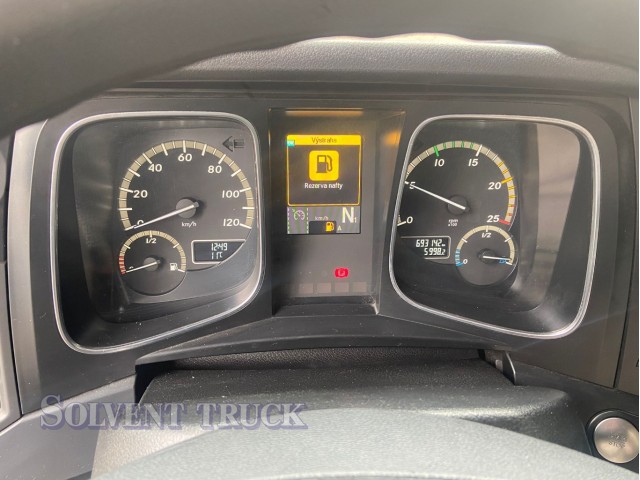 | Výbava vozidla: | Aktivní bezpečnost abs asistent jízdy v jízdním pruhu asistent udržování odstupu aut. aktivace výstražných světlometů eds protiprokluzový systém kol (asr) senzor tlaku v pneumatikách stabilizace podvozku (esp) Audio, video autorádio bluetooth paměťová karta usb Chlazení, topení aut. klimatizace nezávislé topení nezávislé topení s čas. předehřívačem Dveře centrál dálkový centrální zamykání Emise adblue plní 'euro vi' Exteriér boční spoilery střešní spoiler Kabina kabina dlouhá kabina vysoká Komunikace hands free Okna el. okna el. přední okna senzor stěračů vyhřívané trysky ostřikovačů čelního skla Osvětlení led denní svícení mlhovky senzor světel xenonové světlomety Podvozek dvojitá nádrž do 800l nafty pérování vzduch regulace výšky podvozku závěsné zařízení Pohon aut. převodovka motorová brzda pohon 4x2 tempomat uzávěrka diferenciálu Přístroje otáčkoměr palubní počítač tachograf venkovní teploměr vnitřní teploměr Řízení multifunkční volant nastavitelný volant posilovač řízení Sedadla polohovací sedadla vyhřívaná sedadla výškově nastavitelné sedadlo řidiče Startování startování tlačítkem Střecha střešní šíbr el. Zabezpečení bezpečnostní pískování oken imobilizér Zrcátka el. zrcátka vyhřívaná zrcátka Zvláštní výbava 2 lůžka autochladnička |